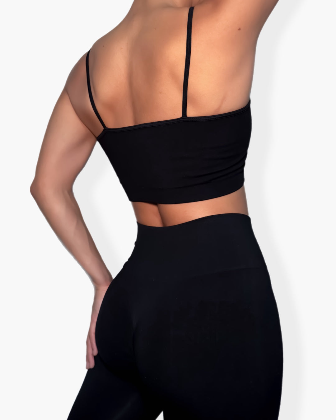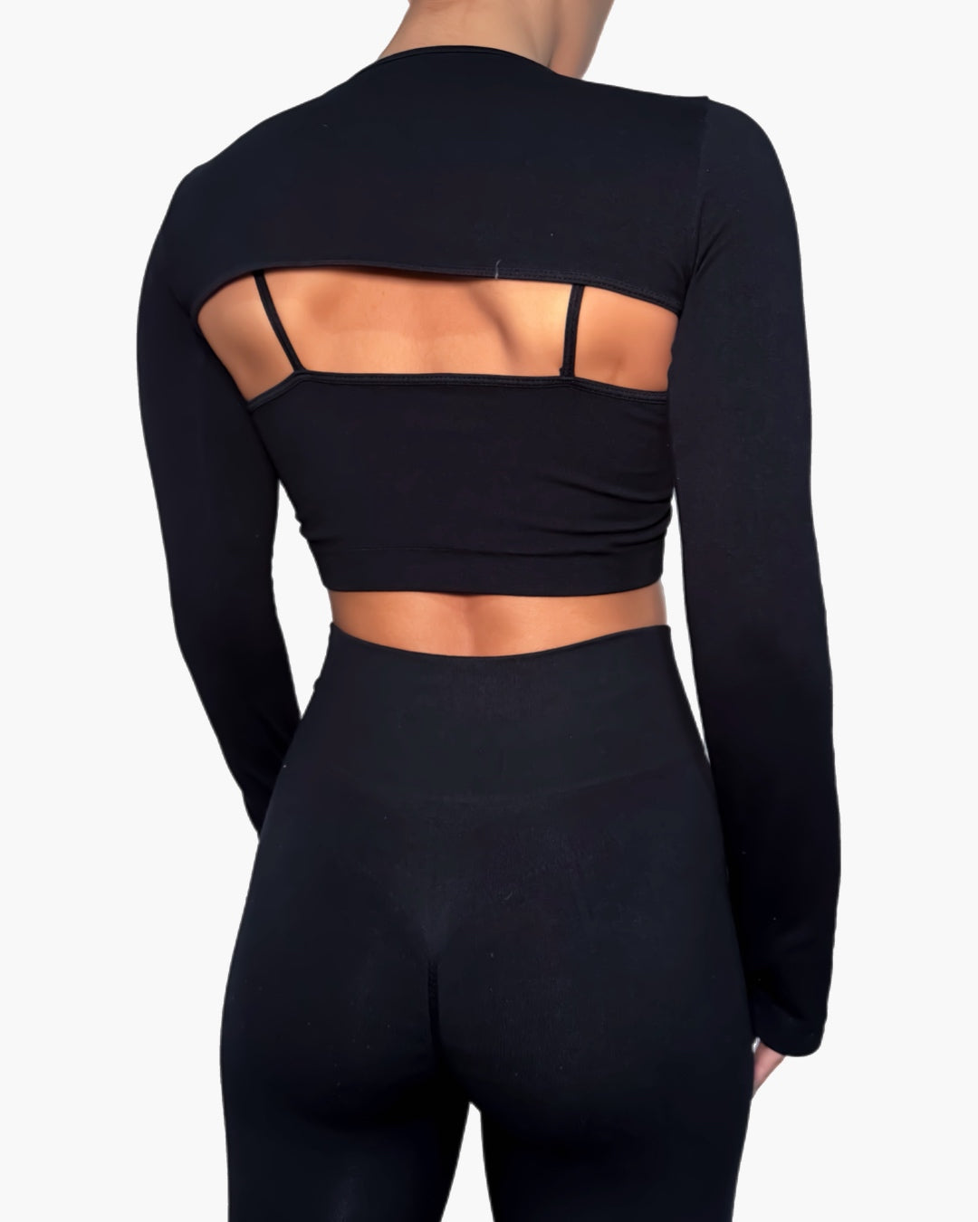 Conjunto deportivo de tres piezas: top de manga larga, top de tirantes y legging con pretina compresora de talle alto. Diseñado para brindar soporte, comodidad y estilo en cada movimiento.